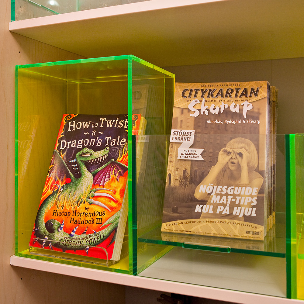 Én boks, to anvendelsesmuligheder – brug den med åbningen opad og fyld den med forskellige temaprodukter eller give-aways, eller vend den om og brug den som udstilingspodie til display af brochurer, bøger m.m.