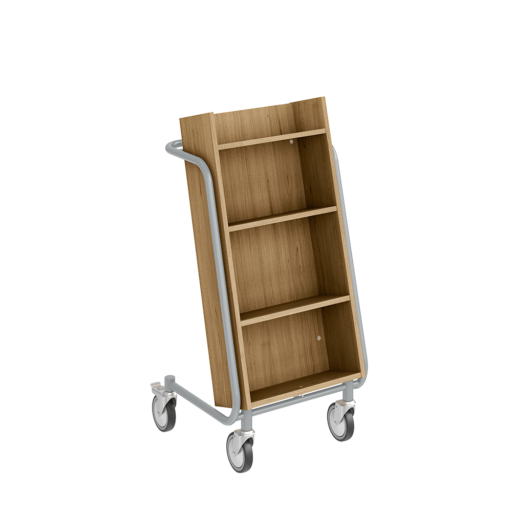 Bogvognens hældning sikrer stabil opbevaring og giver et godt overblik over de bøger, du skal håndtere.